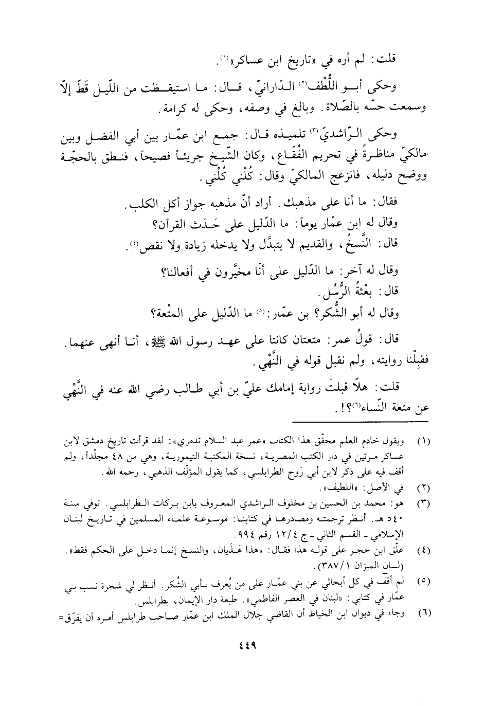 [3] هو: محمد بن الحسين بن مخلوف الراشدي المعروف بابن بركات الطرابلسي. توفي سنة 540 هـ-. انظر ترجمته ومصادرها في كتابنا: موسوعة علماء المسلمين في تاريخ لبنان الإسلامي- القسم الثاني- ج 4/ 12 رقم 994.