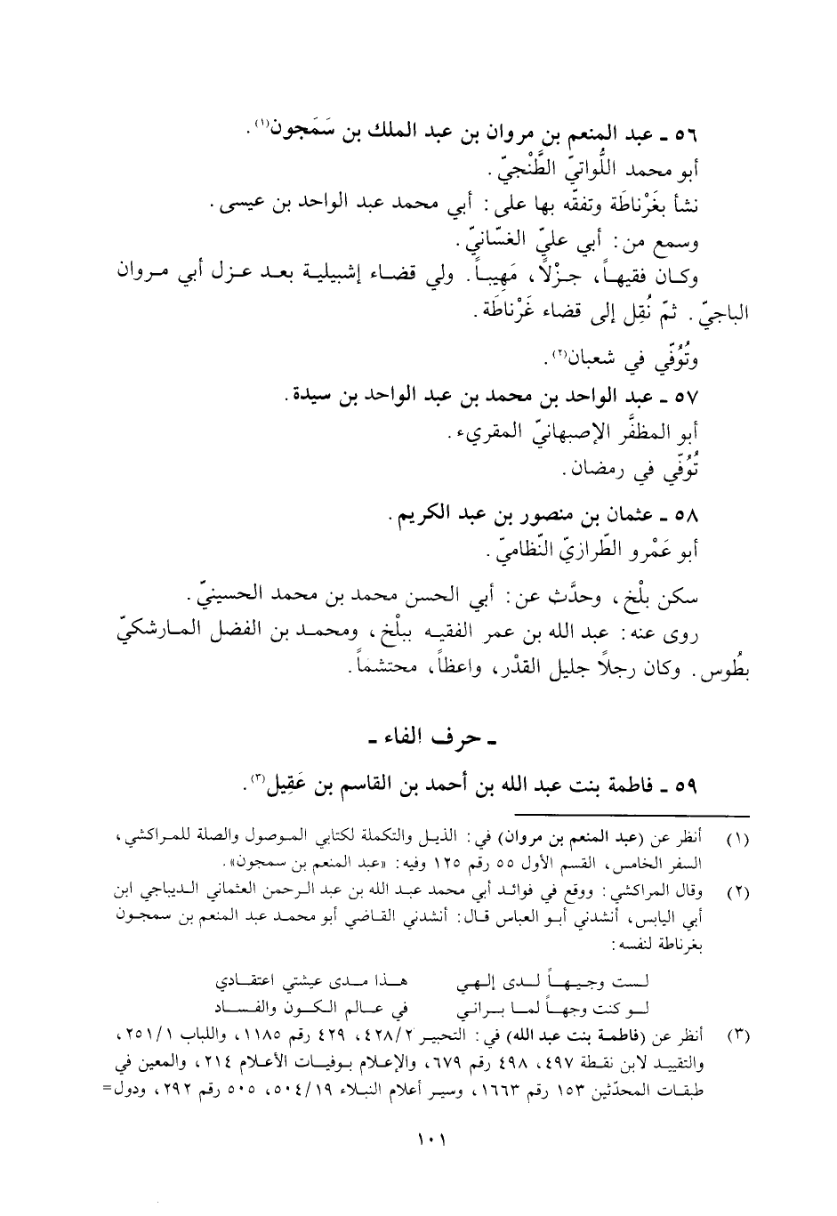 [1] انظر عن (عبد المنعم بن مروان) في: الذيل والتكملة لكتابي الموصول والصلة للمراكشي، السفر الخامس، القسم الأول 55 رقم 125 وفيه: «عبد المنعم بن سمجون» .