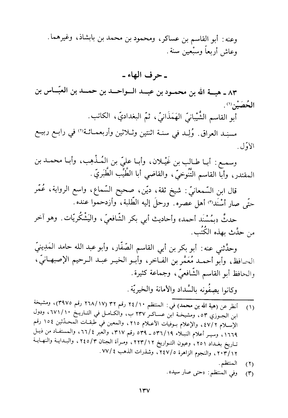 83- هبة الله بن محمود بن عبد الواحد بن حمد بن العبّاس بن الحُصَيْن [1] .