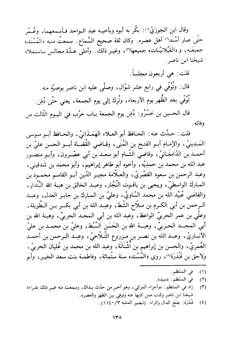 [3] زاد في المنتظم: «وأجزاء المزكي، وهو آخر من حدّث بذاك، وسمعت منه غير ذلك بقراءة شيخنا ابن ناصر وكنت ممن كتبها عنه وتوفي بين الظهر والعصر» .