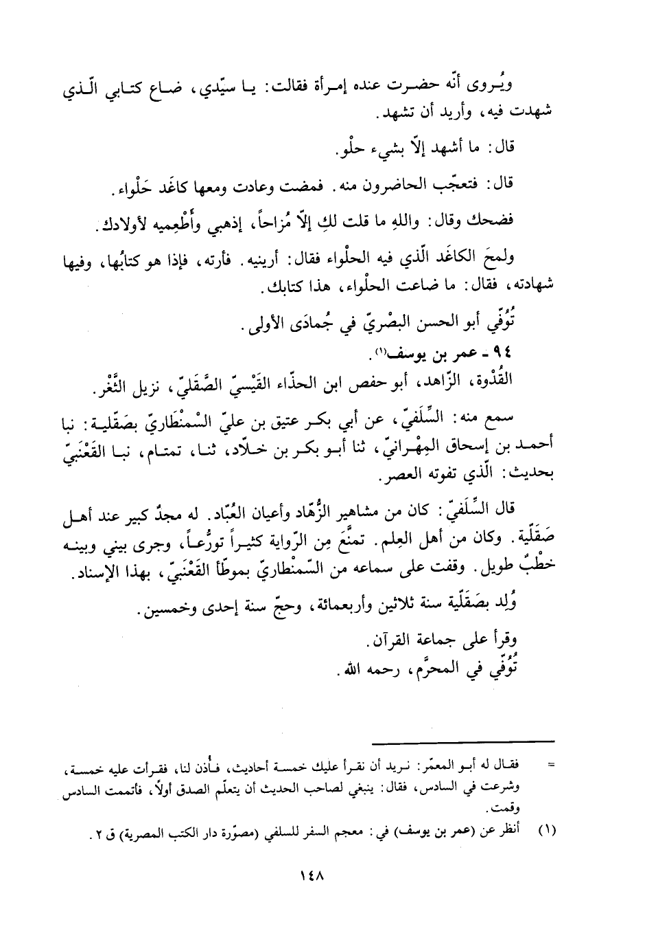 [1] انظر عن (عمر بن يوسف) في: معجم السفر للسلفي (مصوّرة دار الكتب المصرية) ق 2.