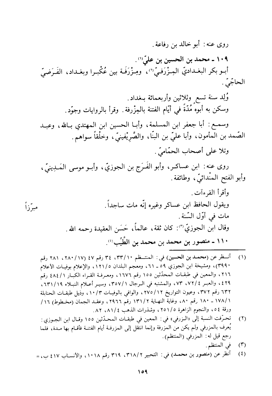 [4] انظر عن (منصور بن محمد) في: التحبير 2/ 318، 319 رقم 1018، والأنساب 417 ب،