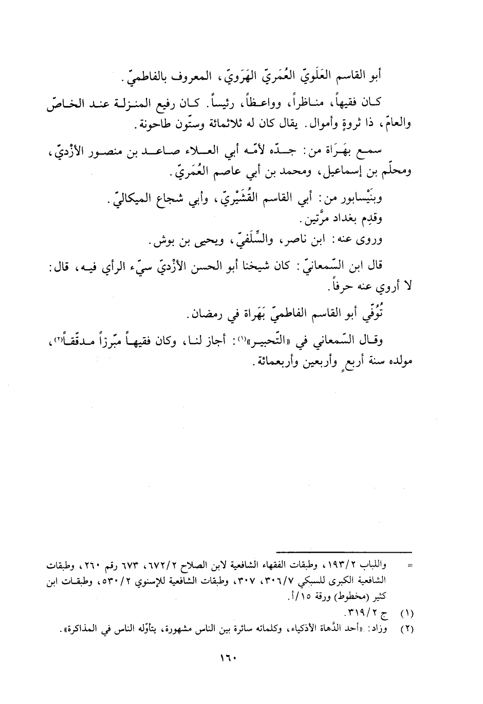 [ () ] واللباب 2/ 193، وطبقات الفقهاء الشافعية لابن الصلاح 2/ 672، 673 رقم 260، وطبقات الشافعية الكبرى للسبكي 7/ 306، 307، وطبقات الشافعية للإسنويّ 2/ 530، وطبقات ابن كثير (مخطوط) ورقة 15/ أ.
