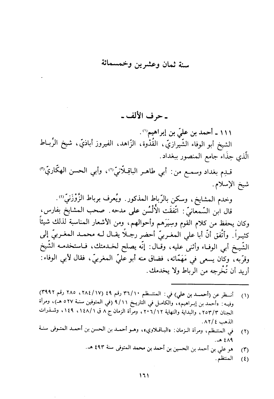 [2] في المنتظم، ومرآة الزمان: «الباقلاوي» ، وهو أحمد بن الحسن بن أحمد المتوفى سنة 489 هـ.