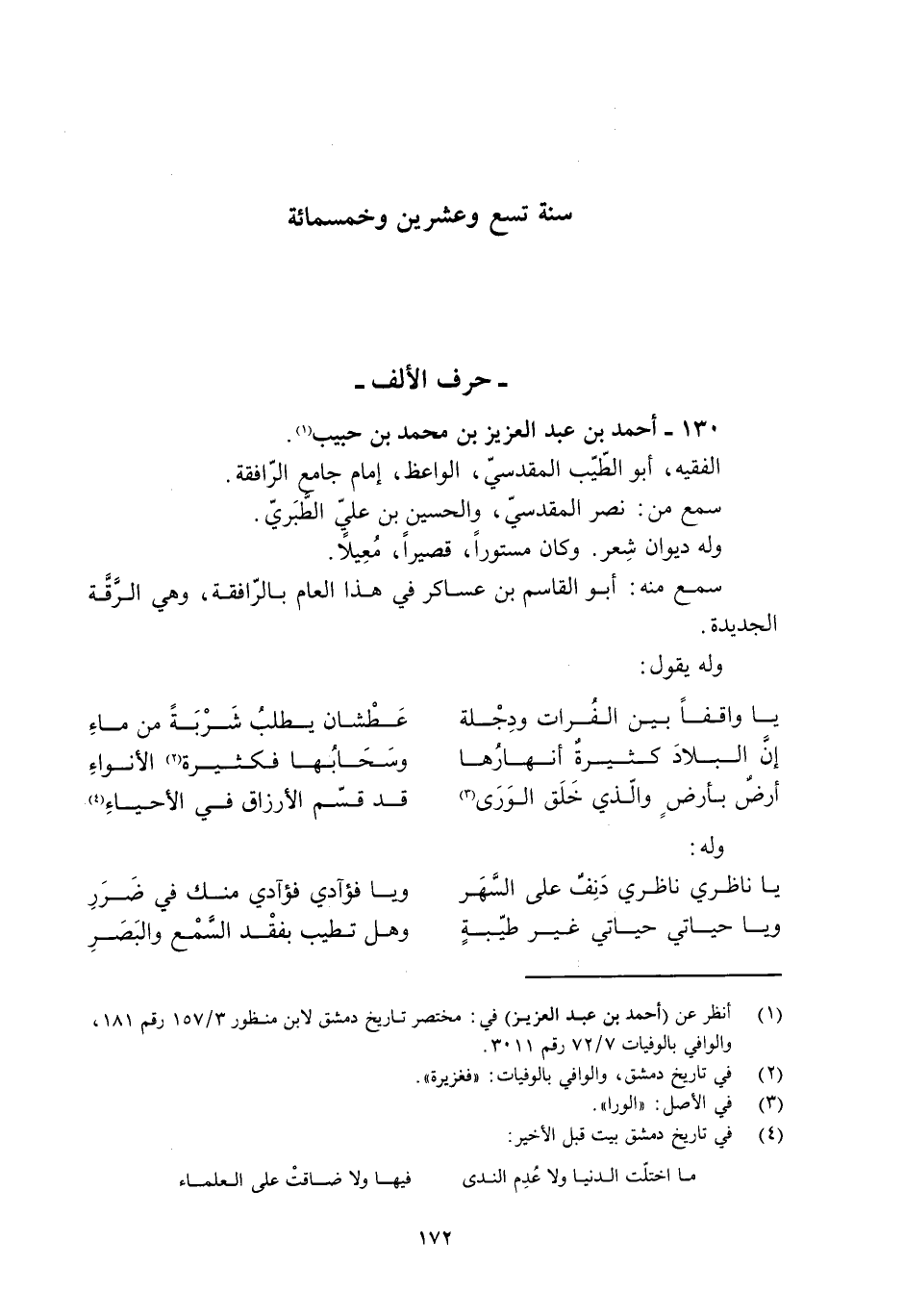 [1] انظر عن (أحمد بن عبد العزيز) في: مختصر تاريخ دمشق لابن منظور 3/ 157 رقم 181، والوافي بالوفيات 7/ 72 رقم 3011.