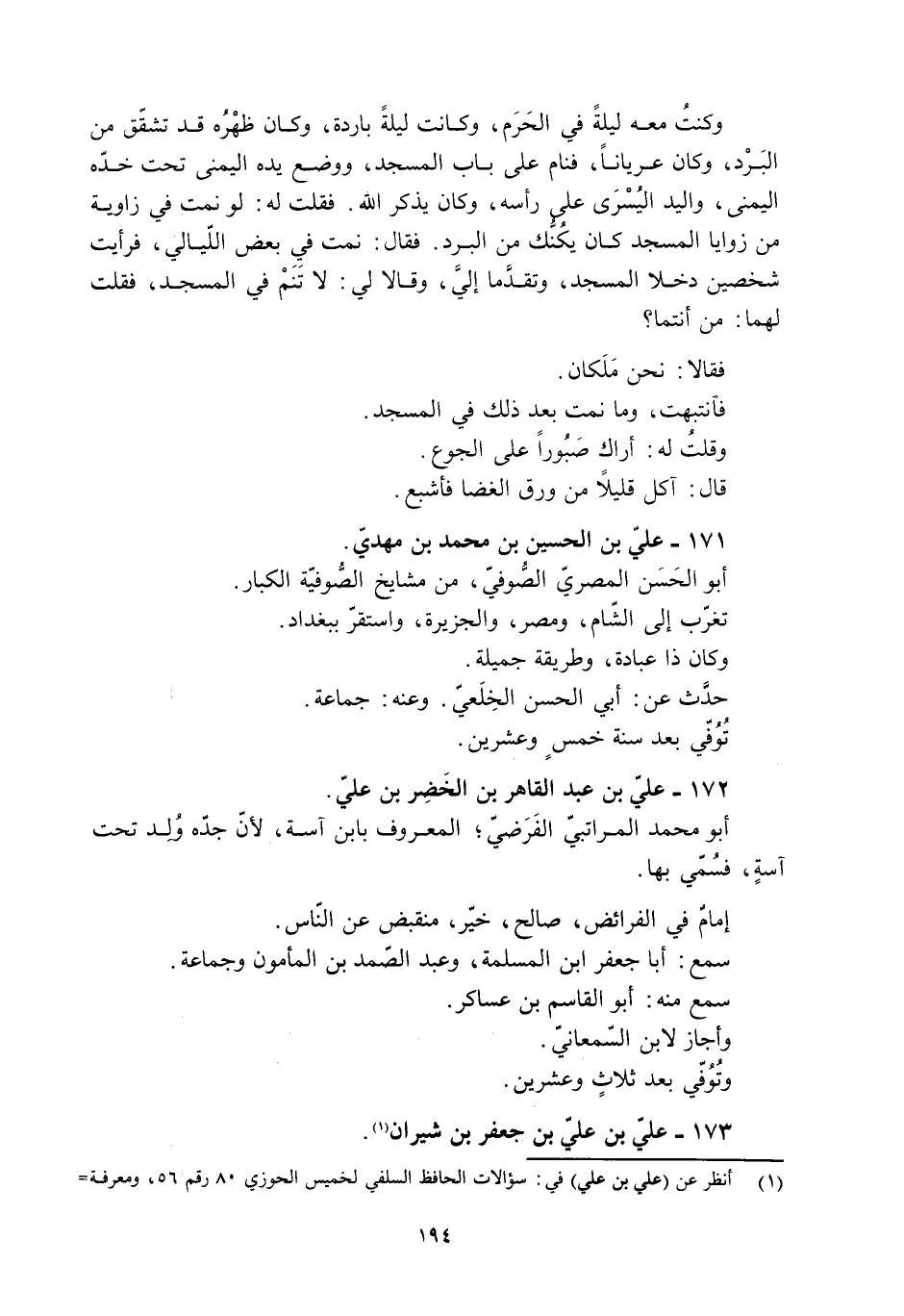 [1] انظر عن (علي بن علي) في: سؤالات الحافظ السلفي لخميس الحوزي 80 رقم 56، ومعرفة