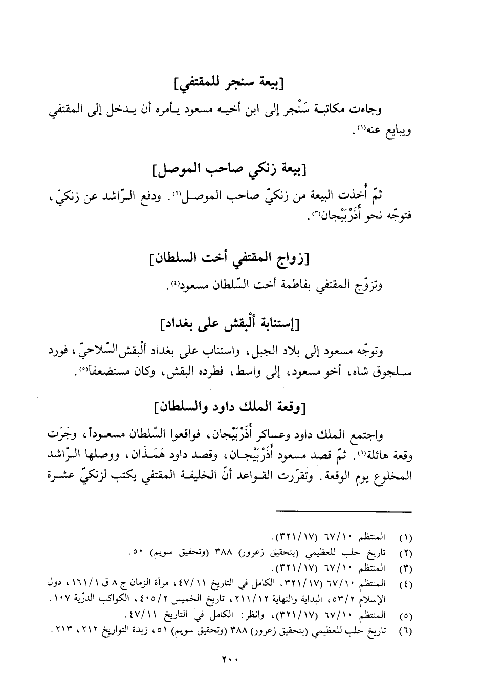[4] المنتظم 10/ 67 (17/ 321، الكامل في التاريخ 11/ 47، مرآة الزمان ج 8 ق 1/ 161، دول الإسلام 2/ 53، البداية والنهاية 12/ 211، تاريخ الخميس 2/ 405، الكواكب الدرّية 107.