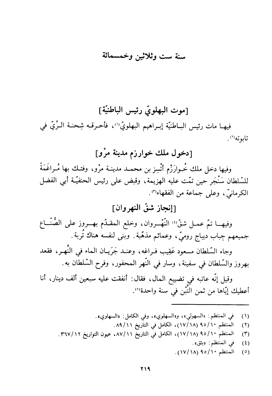 وفيها تمّ عمل شقّ [4] النَهروان، وخلع المقدّم بهروز على الصُّنّاع جميعهم جِباب ديباج روميّ، وعمائم مذهّبه. وبنى لنفسه هناك تُربة.