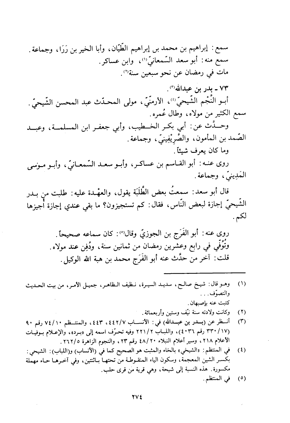 [4] في المنتظم: «الشيخي» بالخاء والمثبت هو الصحيح كما في (الأنساب) و (اللباب) : الشيحي: