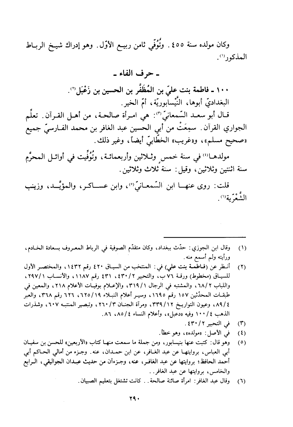100- فاطمة بنت عليّ بن المُظَفَّر بن الحسين بن زعبل [2] .