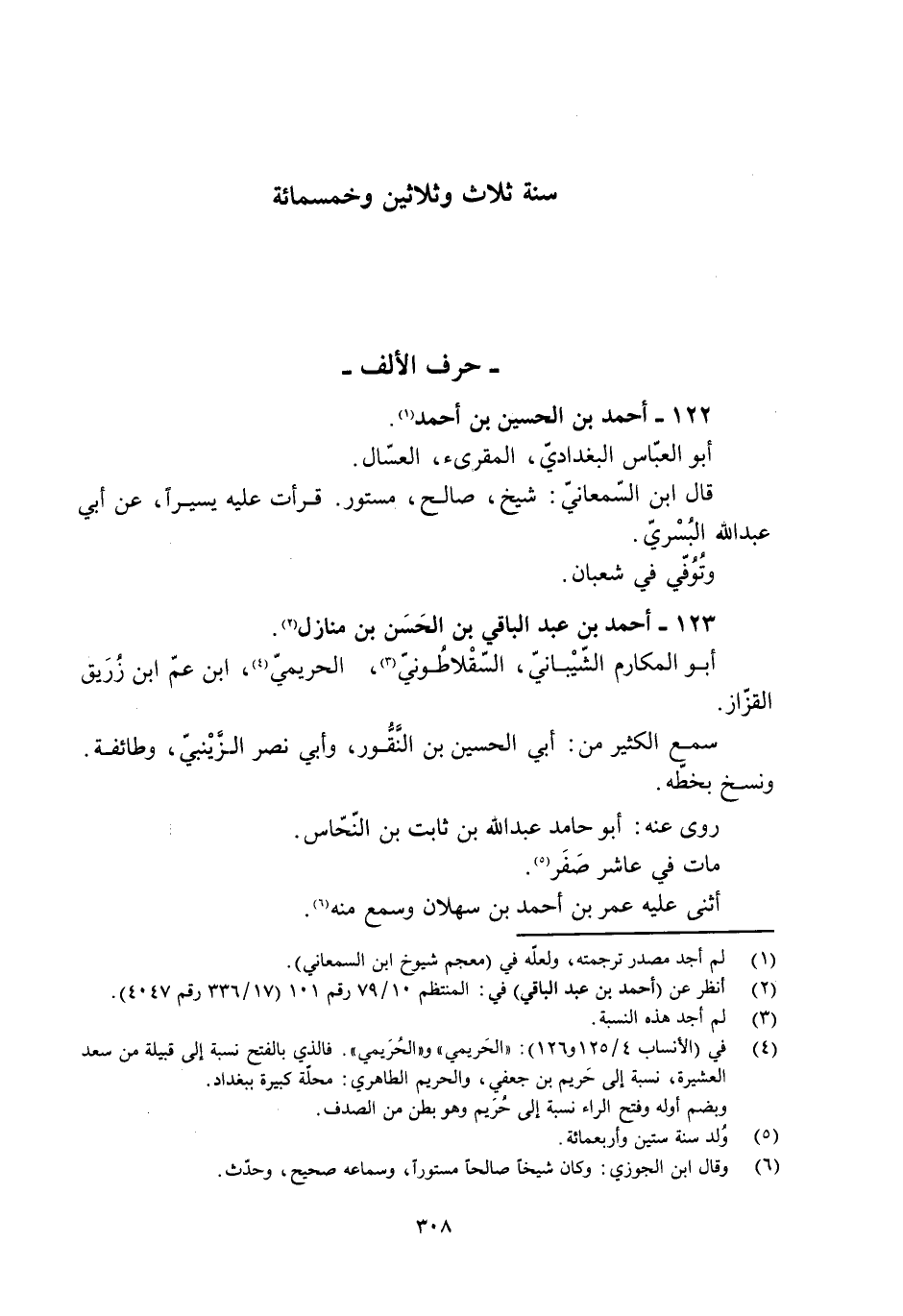 [4] في (الأنساب 4/ 125 و 126) : «الحريمي» و «الحريمي» . فالذي بالفتح نسبة إلى قبيلة من سعد العشيرة، نسبة إلى حريم بن جعفي، والحريم الطاهري: محلّة كبيرة ببغداد.