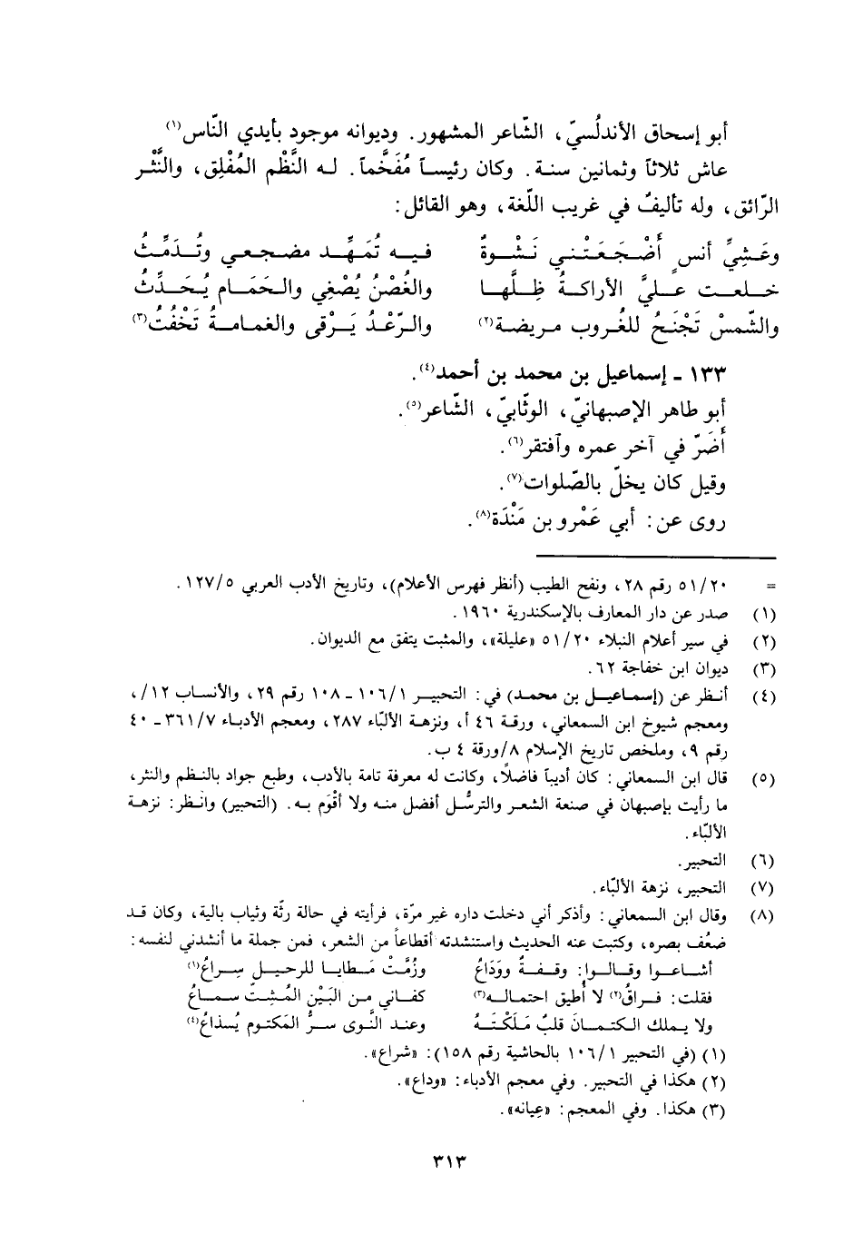 [20] / 51 رقم 28، ونفح الطيب (انظر فهرس الأعلام) ، وتاريخ الأدب العربيّ 5/ 127.