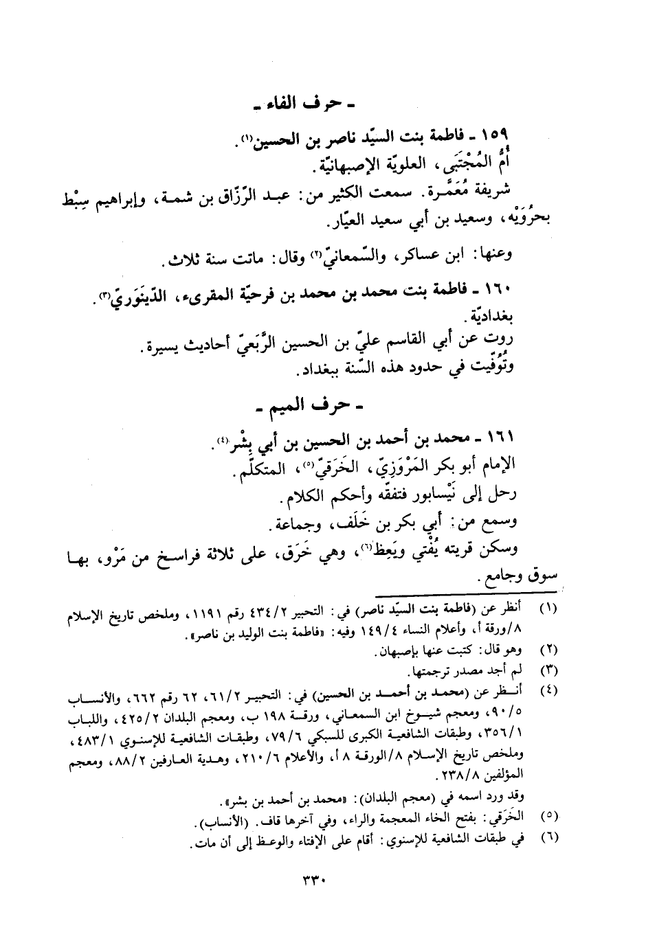 [1] انظر عن (فاطمة بنت السيّد ناصر) في: التحبير 2/ 434 رقم 1191، وملخص تاريخ الإسلام 8/ ورقة أ، وأعلام النساء 4/ 149 وفيه: «فاطمة بنت الوليد بن ناصر» .
