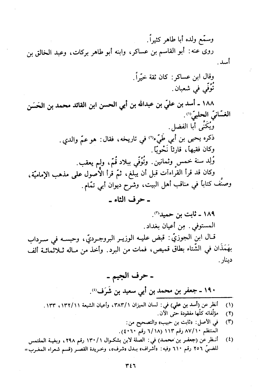 188- أسد بن عَلِيّ بن عَبْد اللَّه بن أَبِي الحَسَن ابن القائد محمد بن الحَسَن الغسّانيّ الحلبيّ [1] .