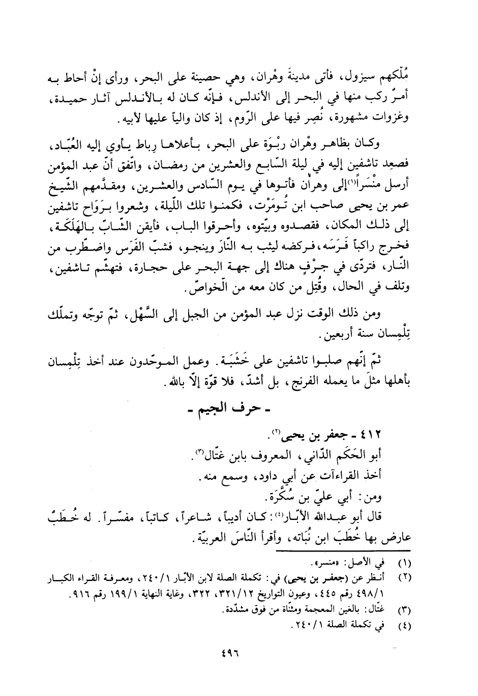 [2] انظر عن (جعفر بن يحيى) في: تكملة الصلة لابن الأبّار 1/ 240، ومعرفة القراء الكبار 1/ 498 رقم 445، وعيون التواريخ 12/ 321، 322، وغاية النهاية 1/ 199 رقم 916.