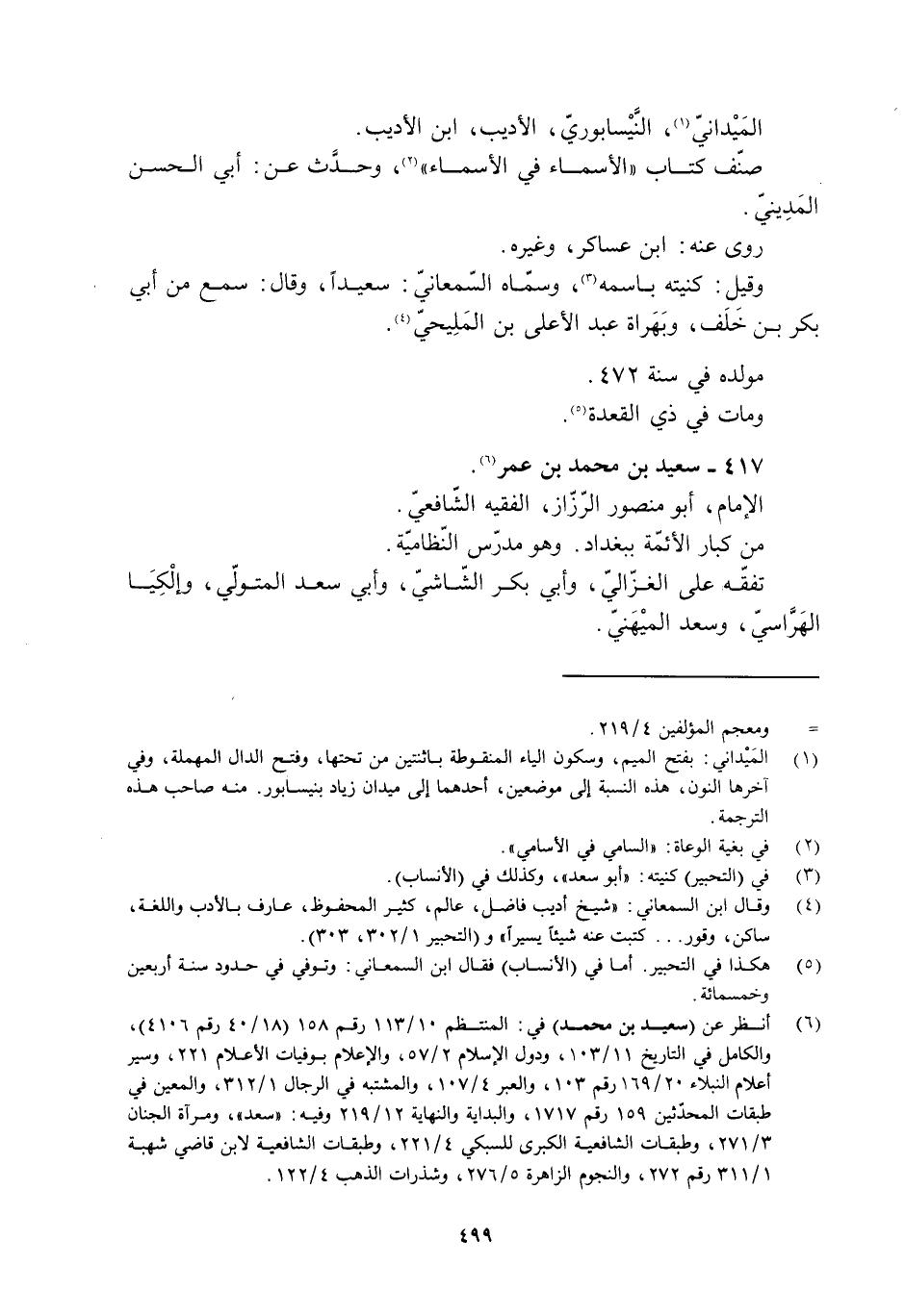 [6] انظر عن (سعيد بن محمد) في: المنتظم 10/ 113 رقم 158 (18/ 40 رقم 4106) ، والكامل في التاريخ 11/ 103، ودول الإسلام 2/ 57، والإعلام بوفيات الأعلام 221، وسير أعلام النبلاء 20/ 169 رقم 103، والعبر 4/ 107، والمشتبه في الرجال 1/ 312، والمعين في طبقات المحدّثين 159 رقم 1717، والبداية والنهاية 12/ 219 وفيه: «سعد» ، ومرآة الجنان 3/ 271، وطبقات الشافعية الكبرى للسبكي 4/ 221، وطبقات الشافعية لابن قاضي شهبة 1/ 311 رقم 272، والنجوم الزاهرة 5/ 276، وشذرات الذهب 4/ 122.