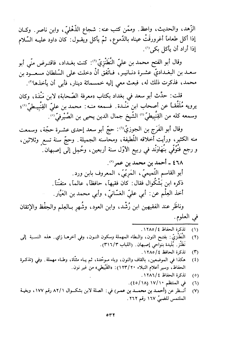 [2] النّطنزيّ: بفتح النون، والطاء المهملة وسكون النون، وفي آخرها زاي. هذه النسبة إلى نطنز. بليدة بنواحي أصبهان. (اللباب 3/ 316) .