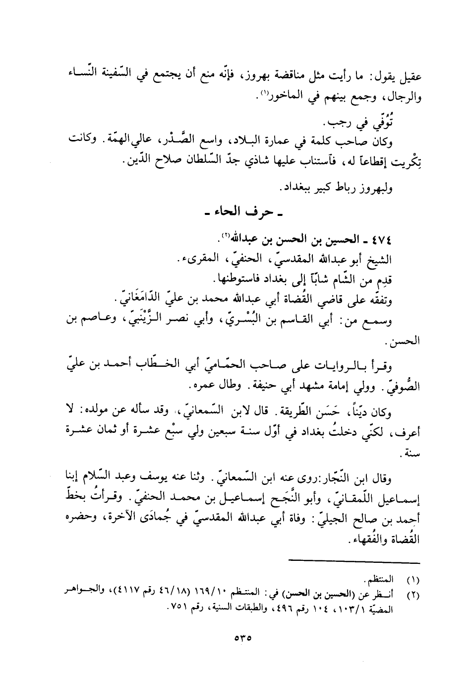[2] انظر عن (الحسين بن الحسن) في: المنتظم 10/ 169 (18/ 46 رقم 4117) ، والجواهر المضيّة 1/ 103، 104 رقم 496، والطبقات السنية، رقم 751.