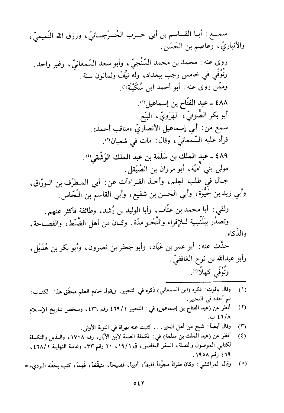 [1] وقال ياقوت: ذكره (ابن السمعاني) ذكره في التحبير. ويقول خادم العلم محقّق هذا الكتاب: