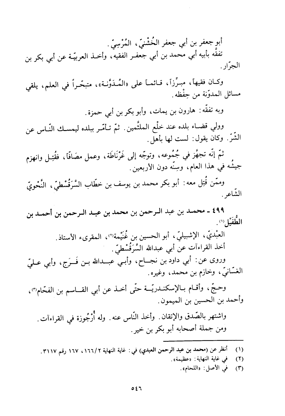 499- مُحَمَّدِ بْن عَبْد الرَّحْمَن بْنُ مُحَمَّدِ بْن عَبْد الرحمن بن أحمد بن الطُّفَيْل [1] .