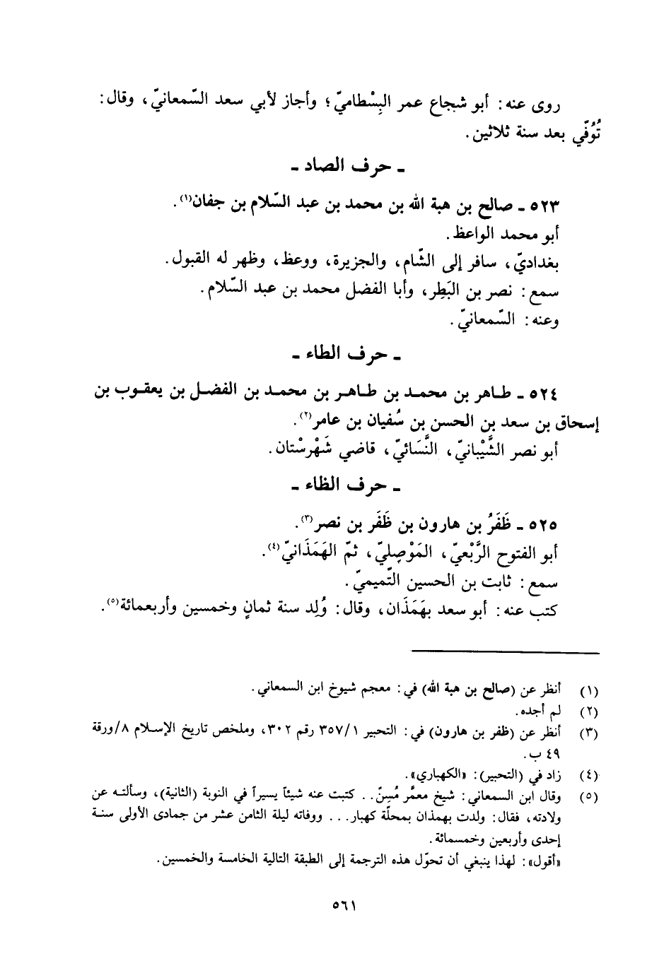 [3] انظر عن (ظفر بن هارون) في: التحبير 1/ 357 رقم 302، وملخص تاريخ الإسلام 8/ ورقة 49 ب.