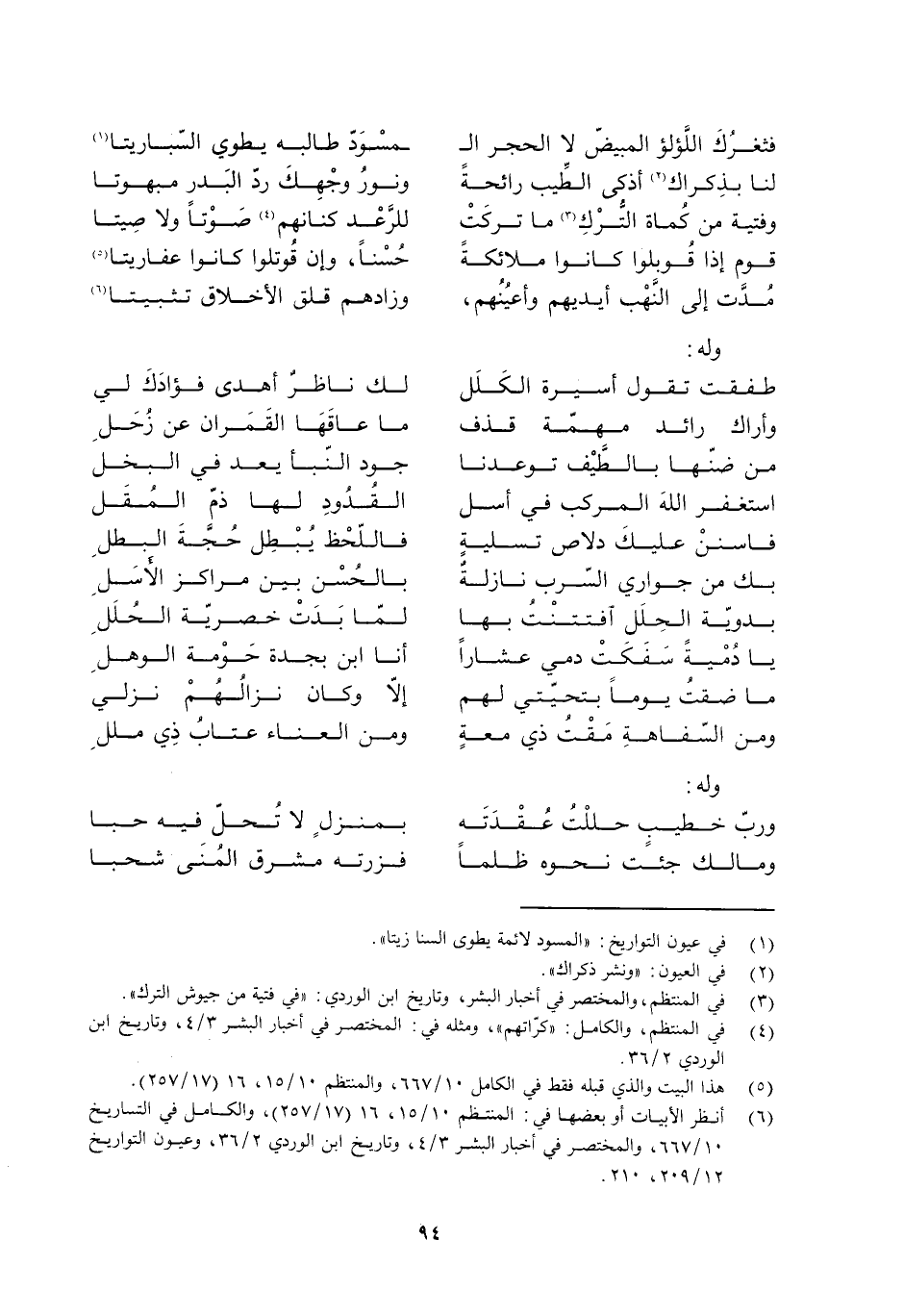 [6] انظر الأبيات أو بعضها في: المنتظم 10/ 15، 16 (17/ 257) ، والكامل في التاريخ 10/ 667، والمختصر في أخبار البشر 3/ 4، وتاريخ ابن الوردي 2/ 36، وعيون التواريخ 12/ 209، 210.