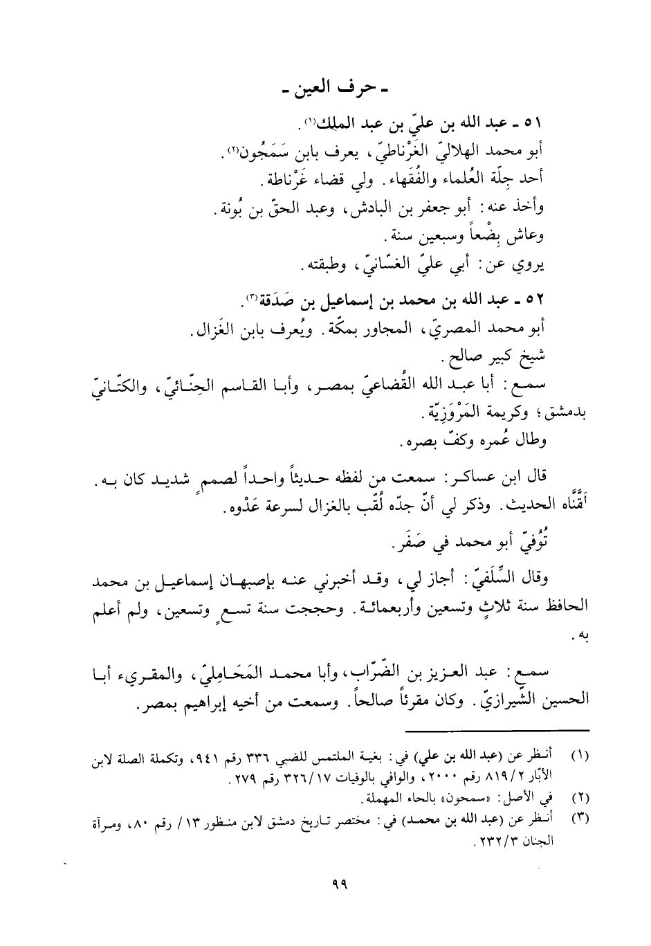 [3] انظر عن (عبد الله بن محمد) في: مختصر تاريخ دمشق لابن منظور 13/ رقم 80، ومرآة الجنان 3/ 232.