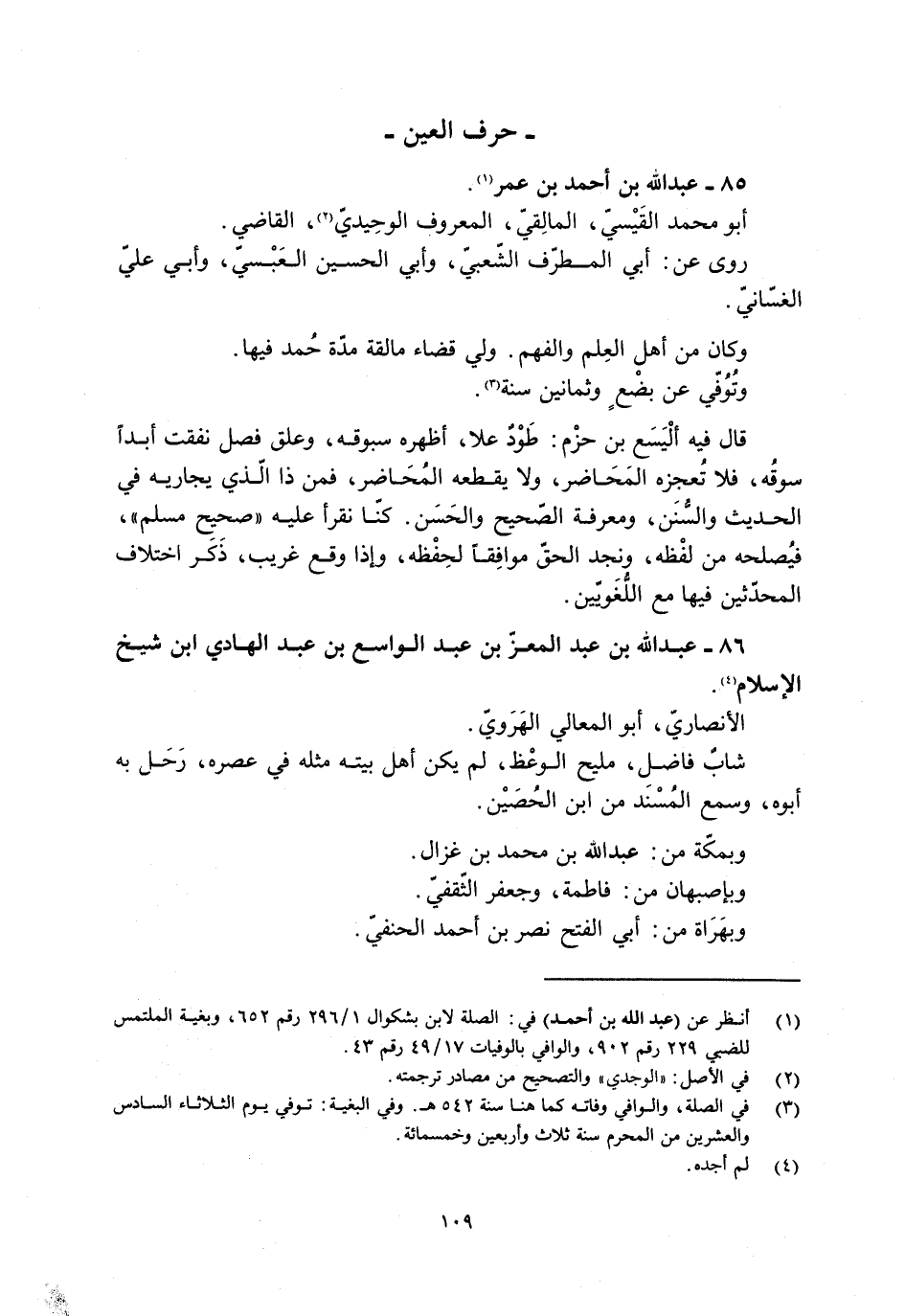 [1] انظر عن (عبد الله بن أحمد) في: الصلة لابن بشكوال 1/ 296 رقم 652، وبغية الملتمس للضبي 229 رقم 902، والوافي بالوفيات 17/ 49 رقم 43.