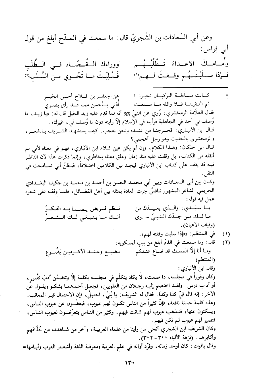 وعن أَبِي السّعادات بْن الشّجريّ قَالَ: ما سَمِعْتُ في المدْح أبلغ من قول أَبِي فِراس: