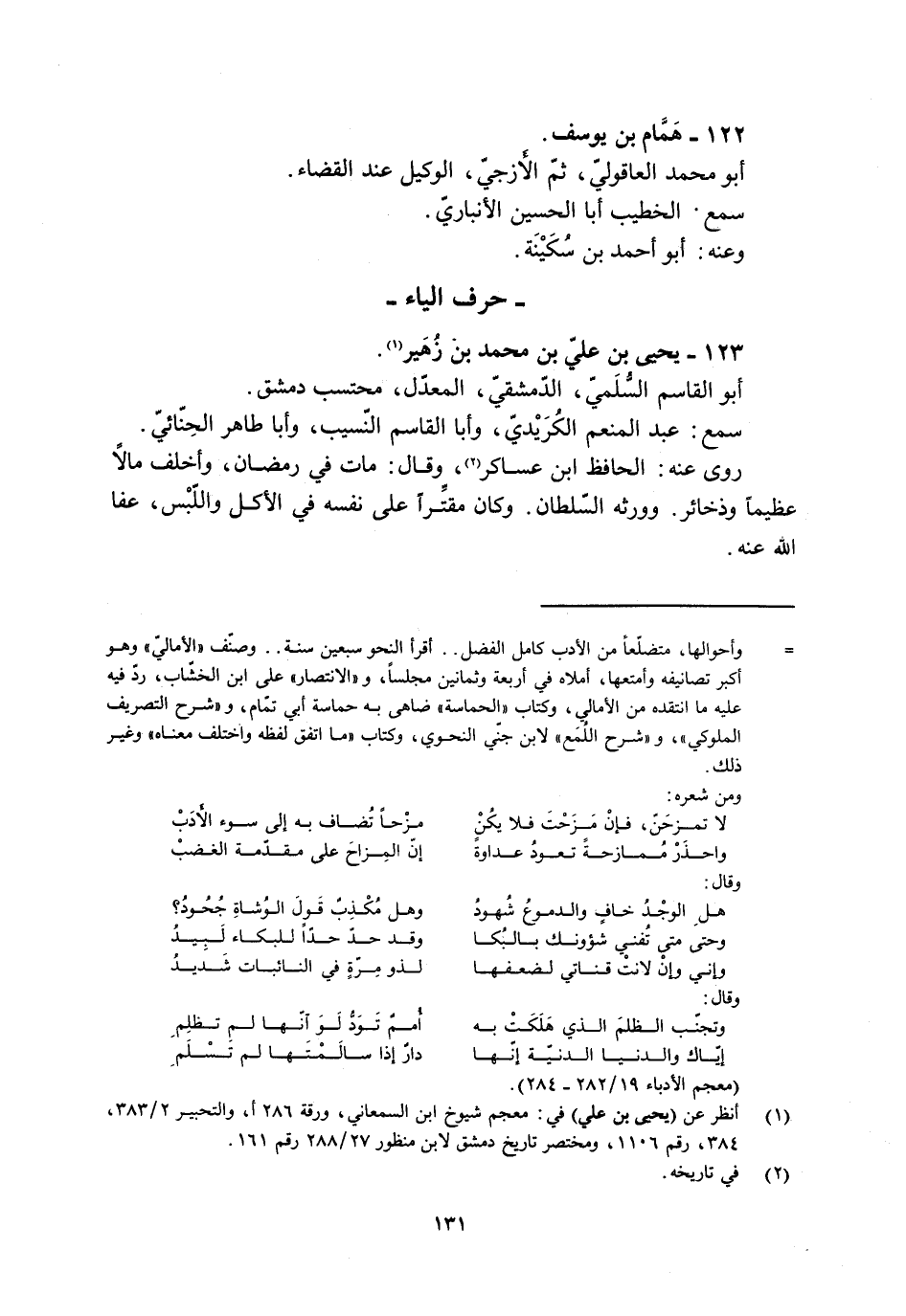 123- يحيى بْن علي بْن محمد بْن زُهَير [1] .