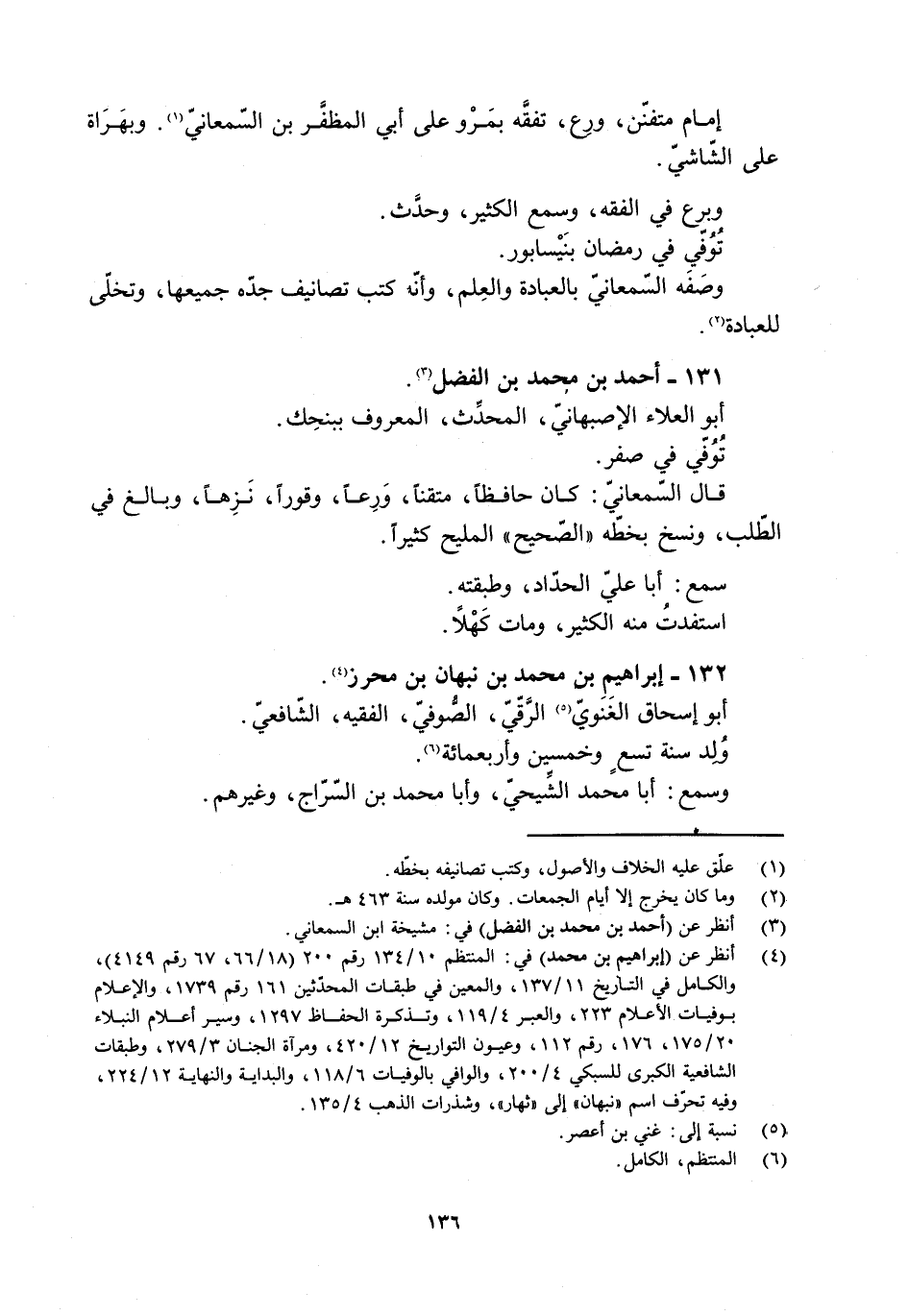 [4] انظر عن (إبراهيم بن محمد) في: المنتظم 10/ 134 رقم 200 (18/ 66، 67 رقم 4149) ، والكامل في التاريخ 11/ 137، والمعين في طبقات المحدّثين 161 رقم 1739، والإعلام بوفيات الأعلام 223، والعبر 4/ 119، وتذكرة الحفاظ 1297، وسير أعلام النبلاء 20/ 175، 176، رقم 112، وعيون التواريخ 12/ 420، ومرآة الجنان 3/ 279، وطبقات الشافعية الكبرى للسبكي 4/ 200، والوافي بالوفيات 6/ 118، والبداية والنهاية 12/ 224، وفيه تحرّف اسم «نبهان» إلى «ثهار» ، وشذرات الذهب 4/ 135.
