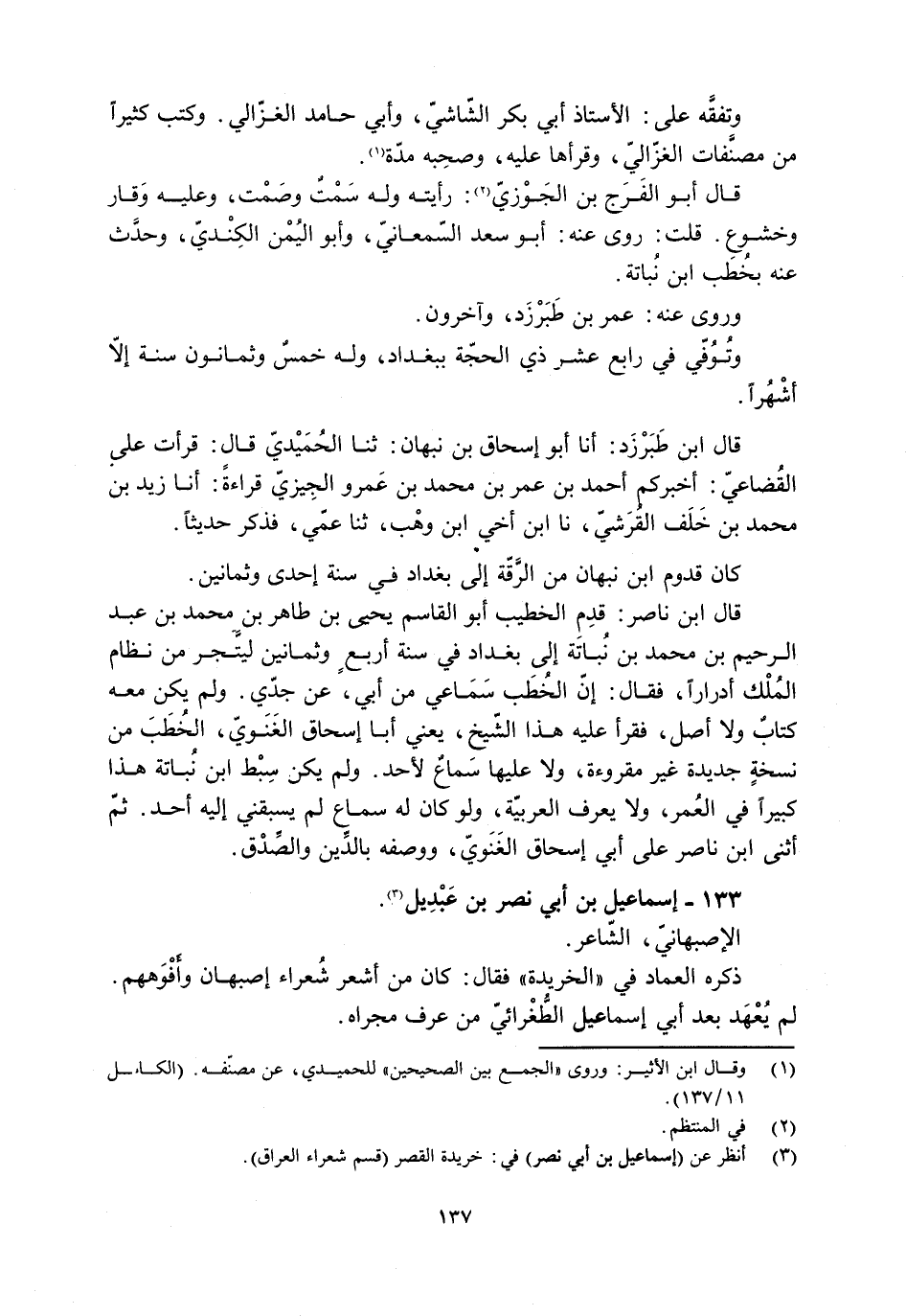 [3] انظر عن (إسماعيل بن أبي نصر) في: خريدة القصر (قسم شعراء العراق) .