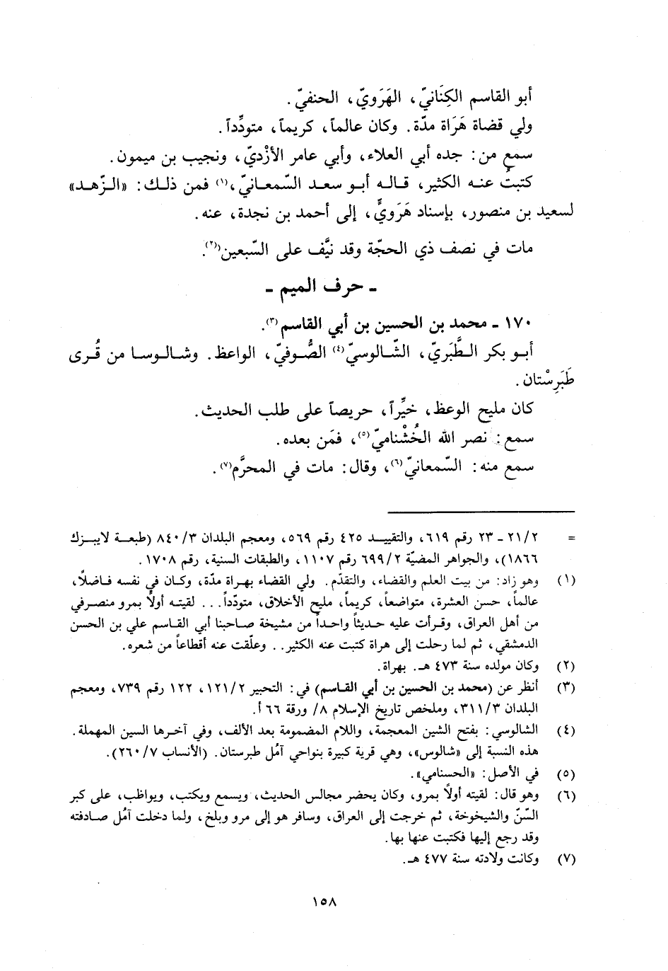 [2] / 21- 23- رقم 619، والتقييد 425 رقم 569، ومعجم البلدان 3/ 840 (طبعة لا يبزك 1866) ، والجواهر المضيّة 2/ 699 رقم 1107، والطبقات السنية، رقم 1708.