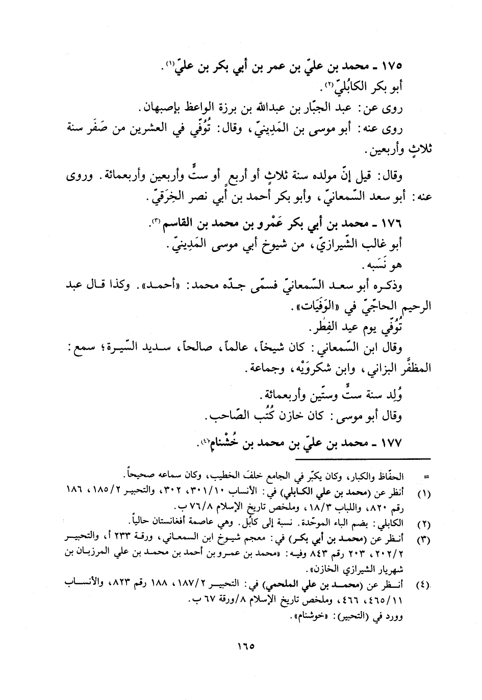 [1] انظر عن (محمد بن علي الكابلي) في: الأنساب 10/ 301، 302، والتحبير 2/ 185، 186 رقم 820، والباب 3/ 18، وملخص تاريخ الإسلام 8/ 76 ب.