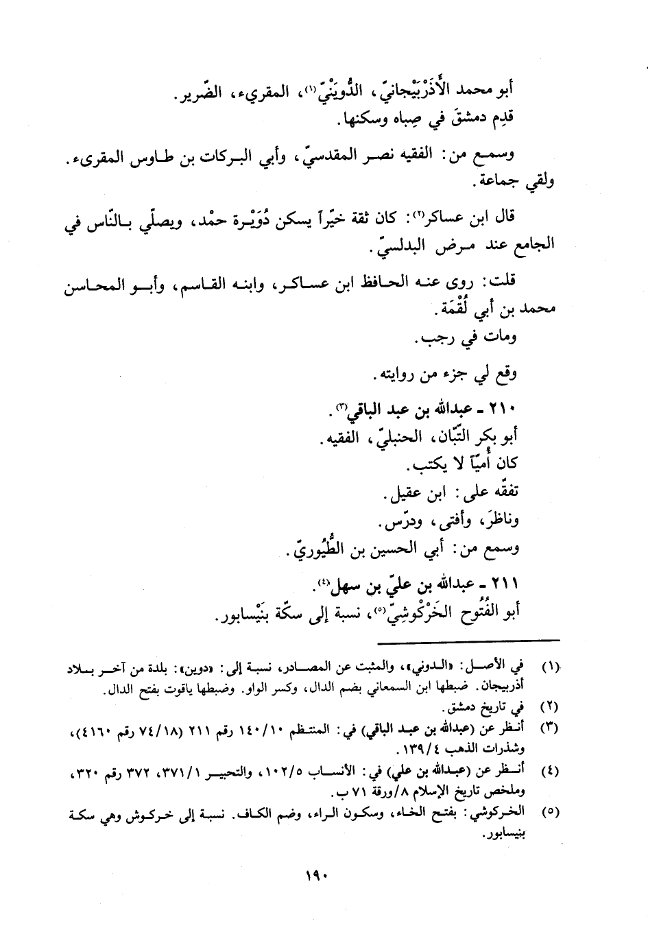 [3] انظر عن (عبد الله بن عبد الباقي) في: المنتظم 10/ 140 رقم 211 (18/ 74 رقم 4160) ، وشذرات الذهب 4/ 139.