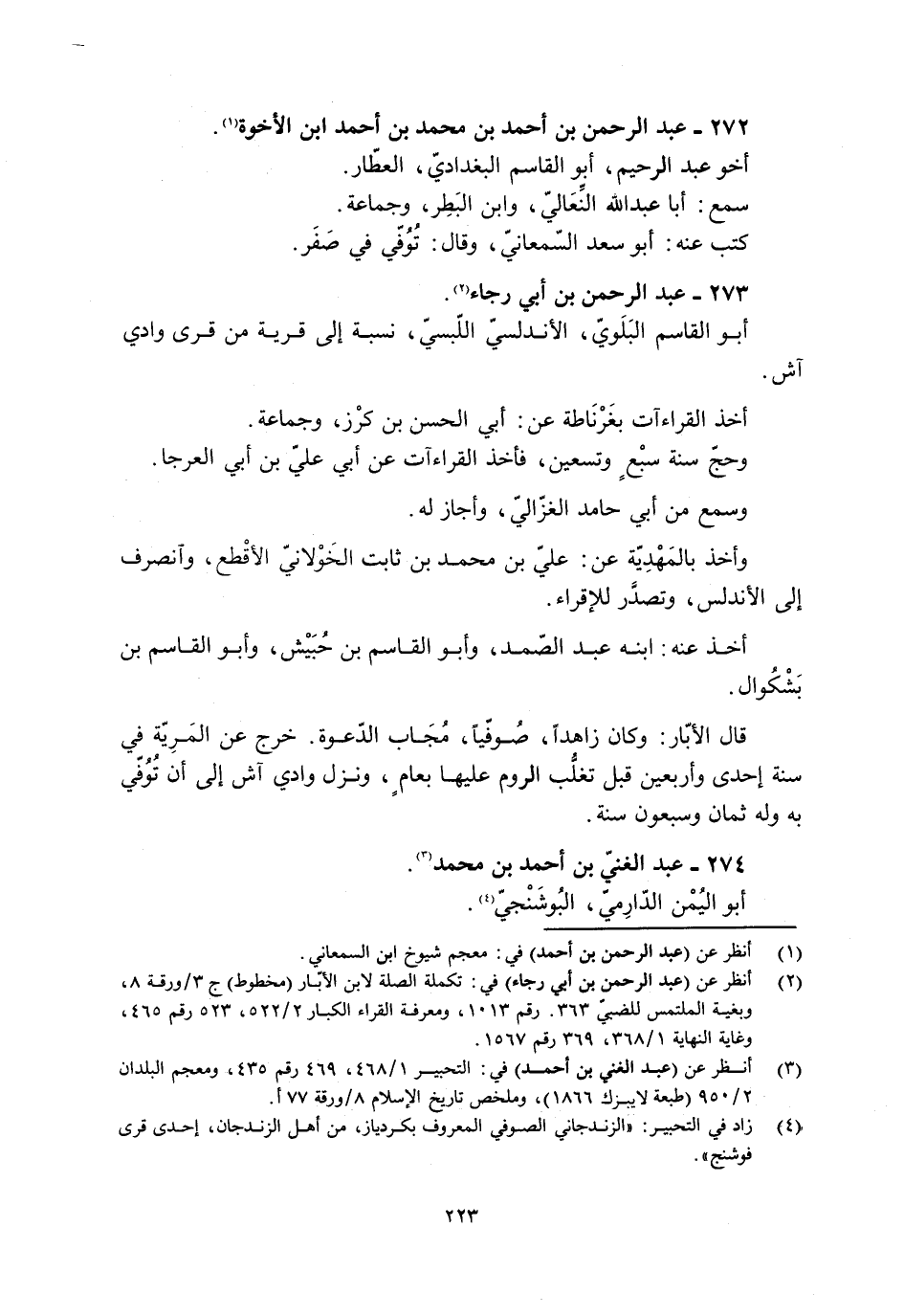 [3] انظر عن (عبد الغني بن أحمد) في: التحبير 1/ 468، 469 رقم 435، ومعجم البلدان 2/ 950 (طبعة لا يبزك 1866) ، وملخص تاريخ الإسلام 8/ ورقة 77 أ.
