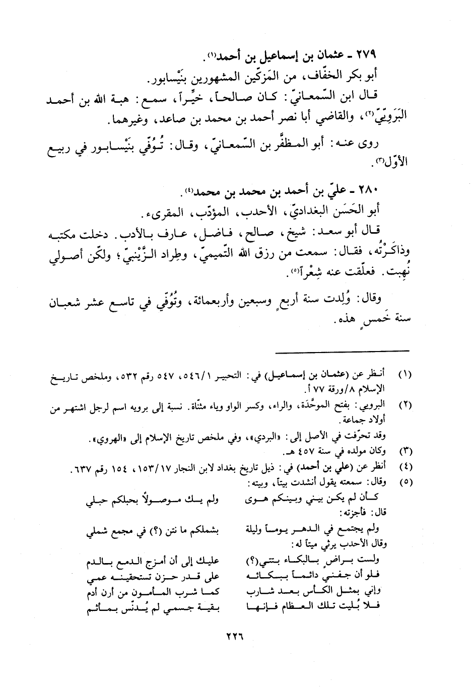 [4] انظر عن (علي بن أحمد) في: ذيل تاريخ بغداد لابن النجار 17/ 153، 154 رقم 637.