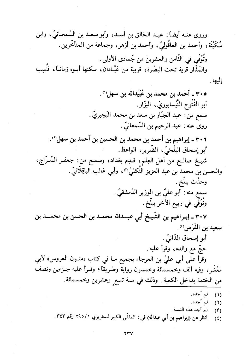 306- إبراهيم بْن أحمد بْن محمد بْن الحسين بْن أحمد بْن سهل [2] .
