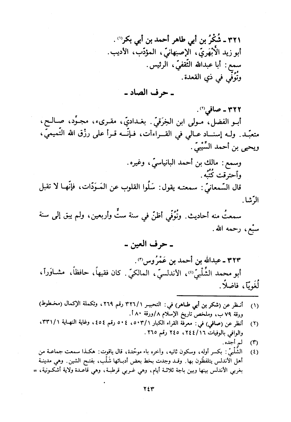 [1] انظر عن (شكر بن أبي طاهر) في: التحبير 1/ 326 رقم 269، وتكملة الإكمال (مخطوط) ورقة 79 ب، وملخص تاريخ الإسلام 8/ ورقة 80 أ.