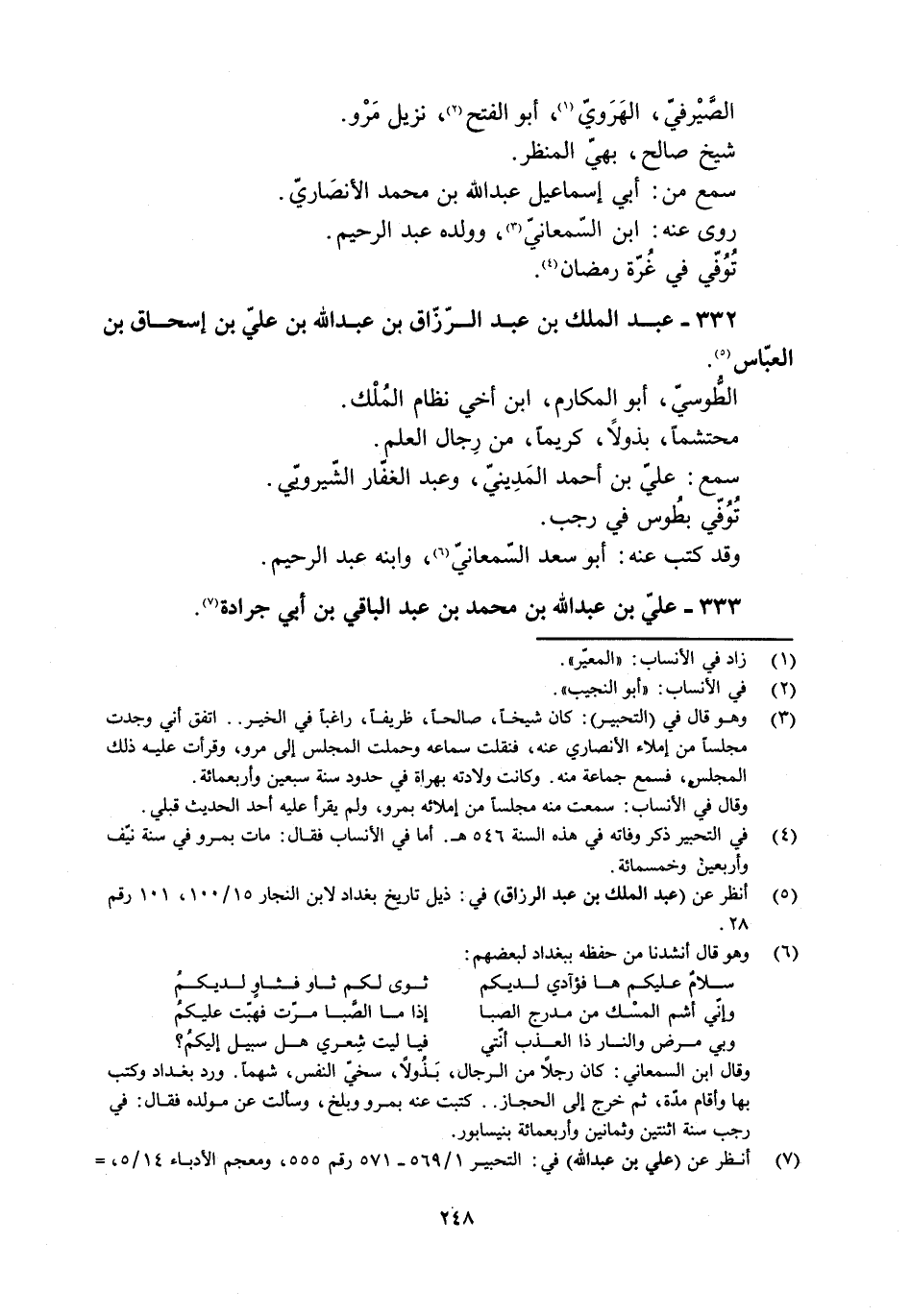 [7] انظر عن (عليّ بن عبد الله) في: التحبير 1/ 569- 571 رقم 555، ومعجم الأدباء 14/ 5،