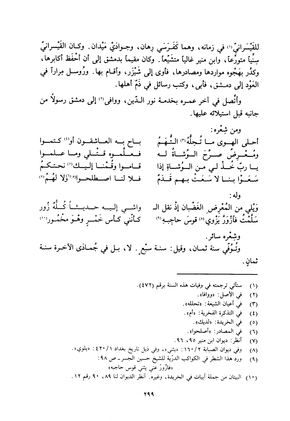 [10] البيتان من جملة أبيات في الخريدة، وغيره. انظر الديوان لنا 89، 90 رقم 12.
