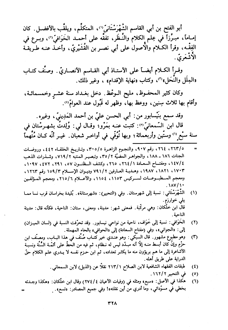 [1] الشّهرستاني: نسبة إلى شهرستان. وفي (التحبير) : «شهرستانة» . بليدة بخراسان قرب نسا مما يلي خوارزم.