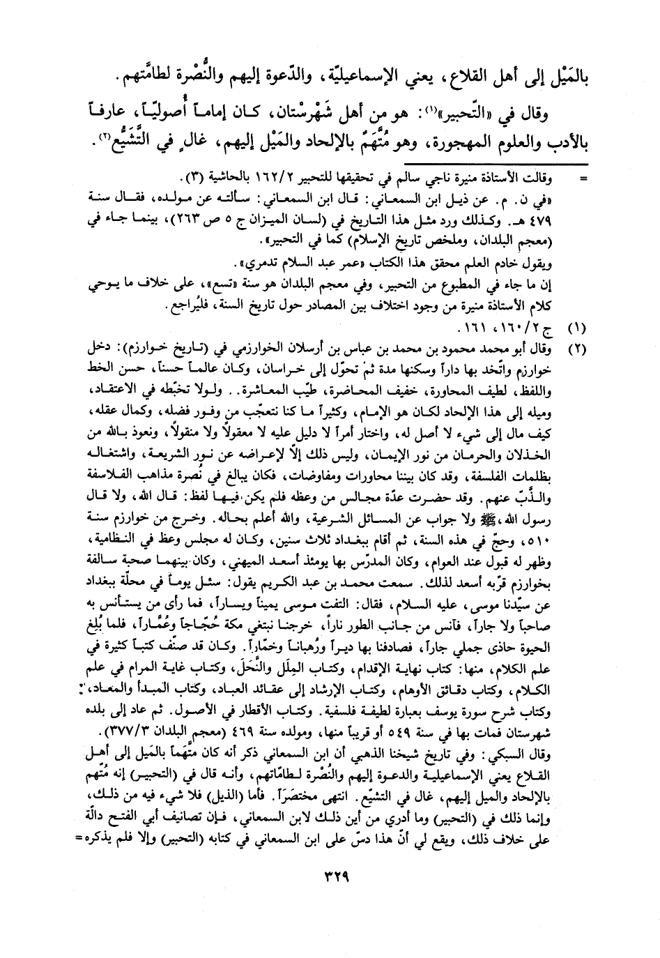 وقال في «التّحبير» [1] : هُوَ من أهل شَهْرسْتان، كَانَ إماما أُصوليًّا، عارفا بالأدب والعلوم المهجورة، وهو مُتَّهَمٌ بالإلحاد والمَيْل إليهم، غال في التّشيّع [2] .