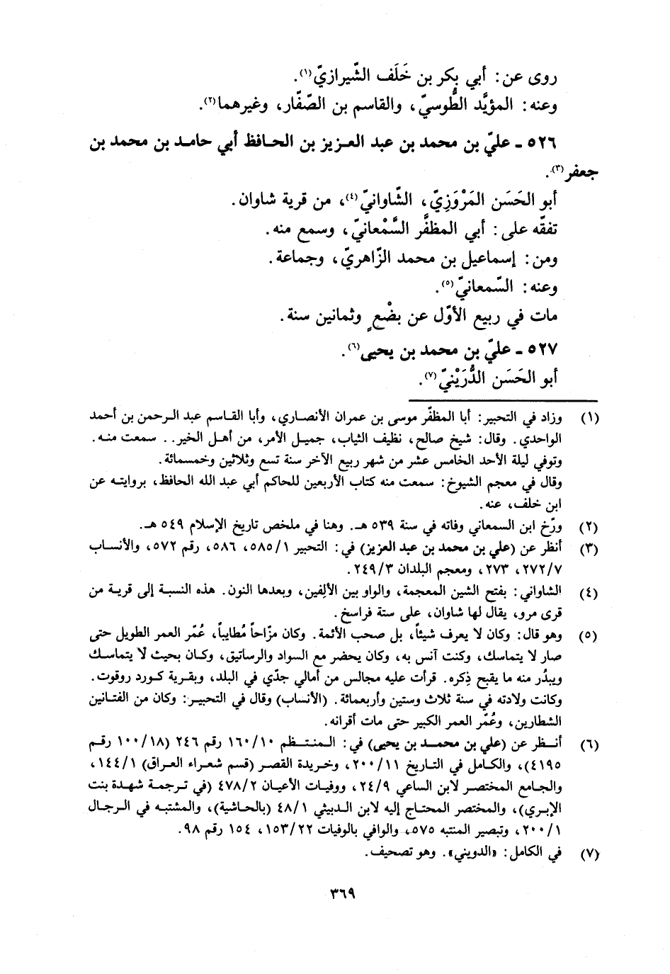 [3] انظر عن (علي بن محمد بن عبد العزيز) في: التحبير 1/ 585، 586، رقم 572، والأنساب 7/ 272، 273، ومعجم البلدان 3/ 249.