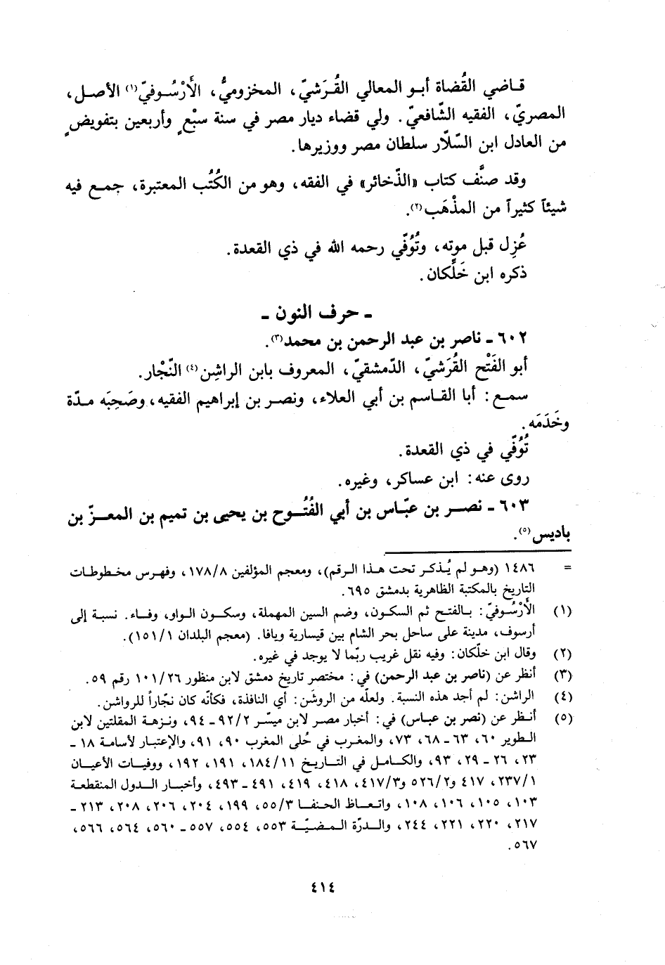 قاضي القُضاة أبو المعالي القُرَشيّ، المخزوميُّ، الأَرْسُوفيّ [1] الأصل، المصريّ، الفقيه الشّافعيّ. ولي قضاء ديار مصر في سنة سبْعٍ وأربعين بتفويضٍ من العادل ابن السّلّار سلطان مصر ووزيرها.
