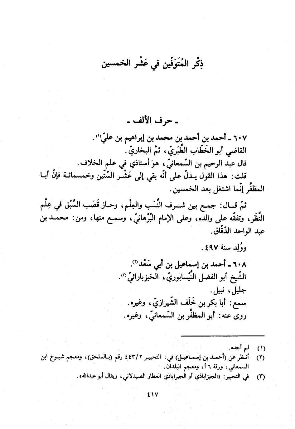 [2] انظر عن (أحمد بن إسماعيل) في: التحبير 2/ 443 رقم (بالملحق) ، ومعجم شيوخ ابن السمعاني، ورقة 6 أ، ومعجم البلدان.