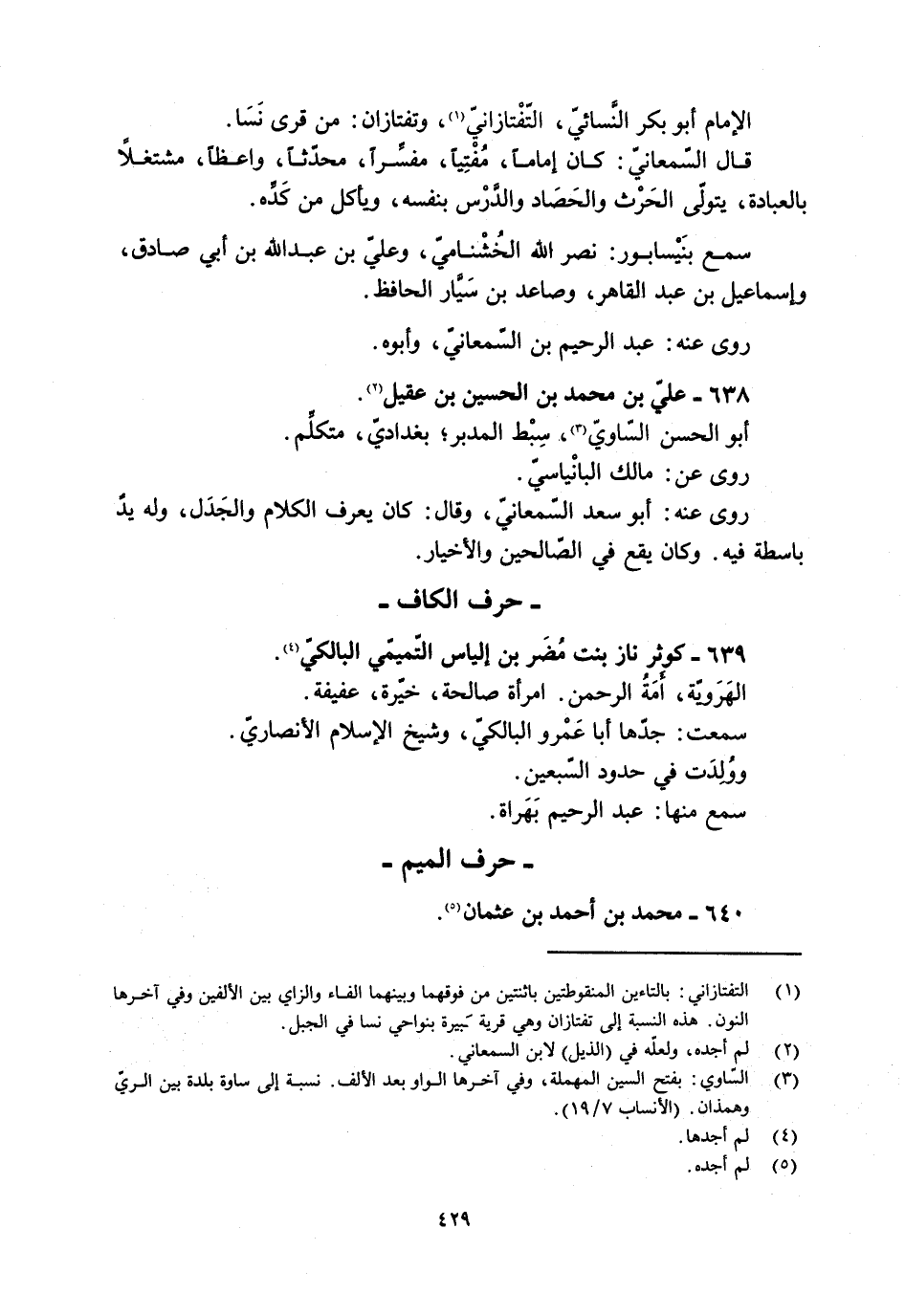 [1] التفتازاني: بالتاءين المنقوطتين باثنتين من فوقهما وبينهما الفاء والزاي بين الألفين وفي آخرها النون. هذه النسبة إلى تفتازان وهي قرية كبيرة بنواحي نسا في الجبل.