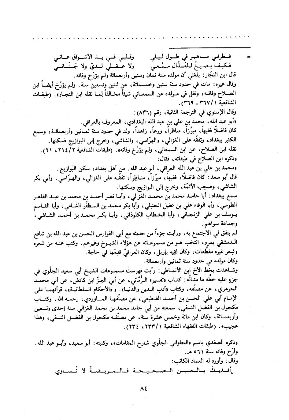 نقله ابن الصلاح، عن ابن السمعاني، ولم يؤرّخ وفاته» . (طبقات الشافعية 2/ 214، 21) .