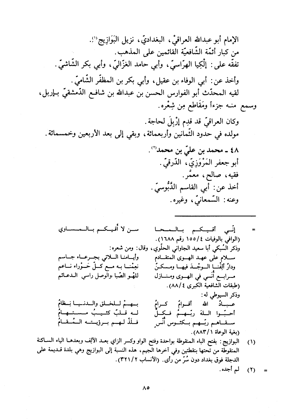 [1] البوازيج: بفتح الباء المنقوطة بواحدة وفتح الواو وكسر الزاي بعد الألف وبعدها الياء الساكنة المنقوطة من تحتها بنقطتين وفي آخرها الجيم، هذه النسبة إلى البوازيج وهي بلدة قديمة على الدجلة فوق بغداد دون سرّ من رأى. (الأنساب 2/ 321) .