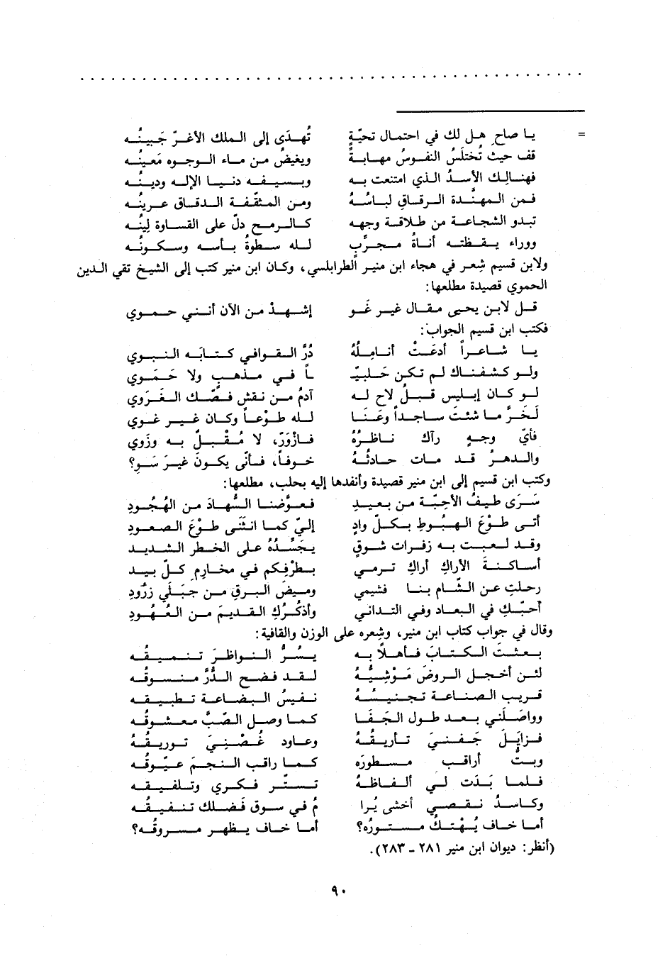 وكتب ابن قسيم إلى ابن منير قصيدة وأنفدها إليه بحلب، مطلعها: